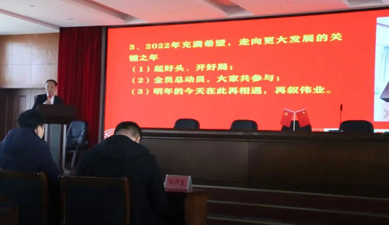 总经理傅士超先生回顾并总结了去年一年的工作并对于目前工作中暴露的不足进行复盘反思,对2022年的全年工作计划和方向做出了重要安排和战略部署。要求大家修内功炼外功,内树文化外树品牌,各部门牟定公司发展战略,各司其职,团结协作,合力达成2022年目标。