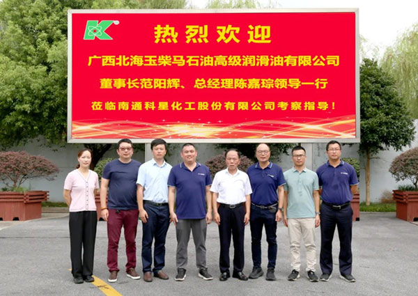 2023年8月17日,广西北海玉柴马石油高级润滑油有限公司董事长范阳辉、总经理陈嘉琮领导一行莅临江苏俄罗斯专享会新材料暨俄罗斯专享会·(中国区)官方网站考察指导,俄罗斯专享会董事长吴龙铁、执行总裁吴晓强、技术总工程师王一助陪同接待。